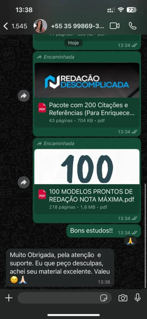 Muitos alunos veem melhoria já na primeira redação usando nossos modelos. Em média, em 7 dias você já domina a estrutura completamente.